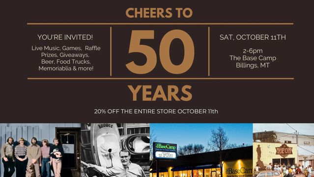 Join The Base Camp as they mark 50 years in business (and 35 years in Billings) with an afternoon of community celebration. Enjoy live music, local food trucks, cozy fire pits, and free hot cocoa in a commemorative 50th Anniversary Hydro Flask mug (while supplies last).