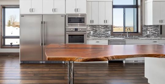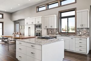 The stunning custom-built home by Ban Construction boasts soaring ceilings and unique finishes! Its open concept design is ideal for entertaining.