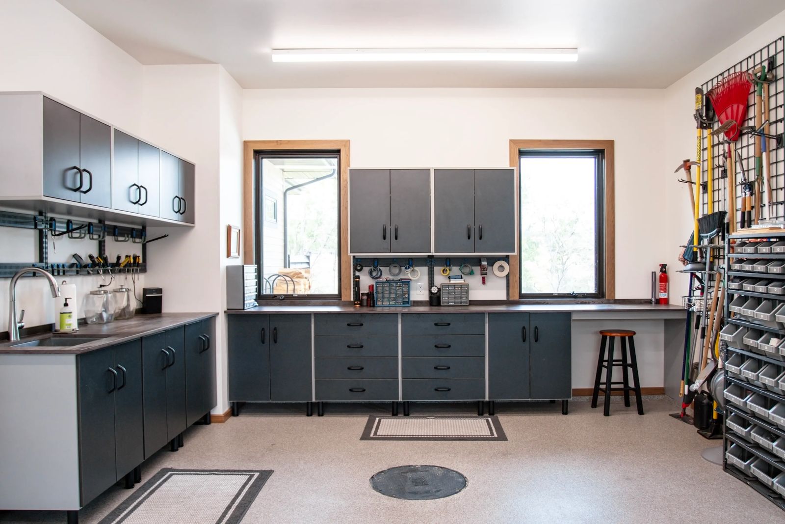 Summer is a great time to think about reorganizing the garage. The weather’s warm, and the driveway becomes an extension of a natural workspace as you sort through your belongings. But garages pose an extra challenge. They’re one of the most versatile and hardest working spaces and can too often be a catch-all for anything that doesn’t have space in the house. It’s where you’ll find recycling bins, the deep freezer, perhaps an extra refrigerator, sporting equipment, tools, a workbench, seasonal storage for holiday decor and things like sleds and snowblowers, and a lawn mower. And here in Montana, being able to fit cars is a must. (It is one of your biggest purchases, after all!) With so much happening in this space, whether a single stall or a five-car garage, smart solutions, and ample storage are key to keeping it all running smoothly.