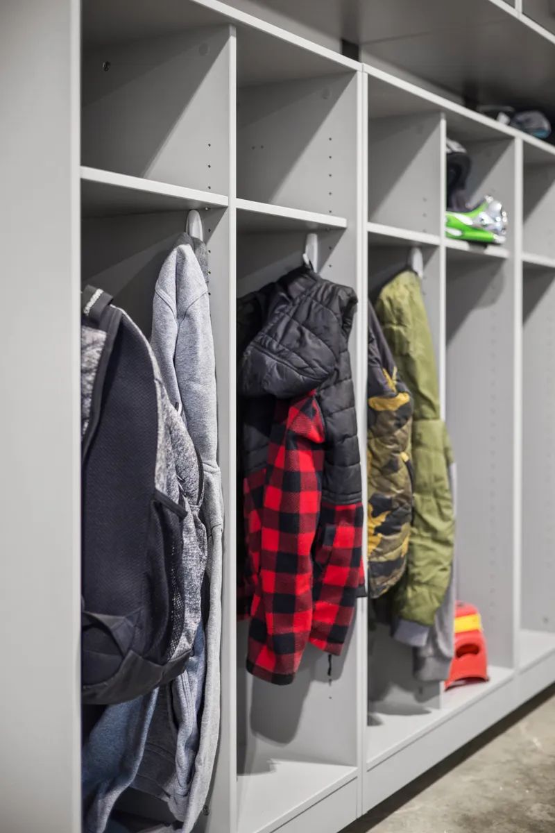 They can get creative to meet a variety of needs. Price says she recently put doors on some 8-foot-tall cabinets with larger storage totes, so everything was sleek and out of sight. Another time, she designed lockers for school-aged children that held their coats and backpacks so it was easy for them to grab things on their way in and out of the house.