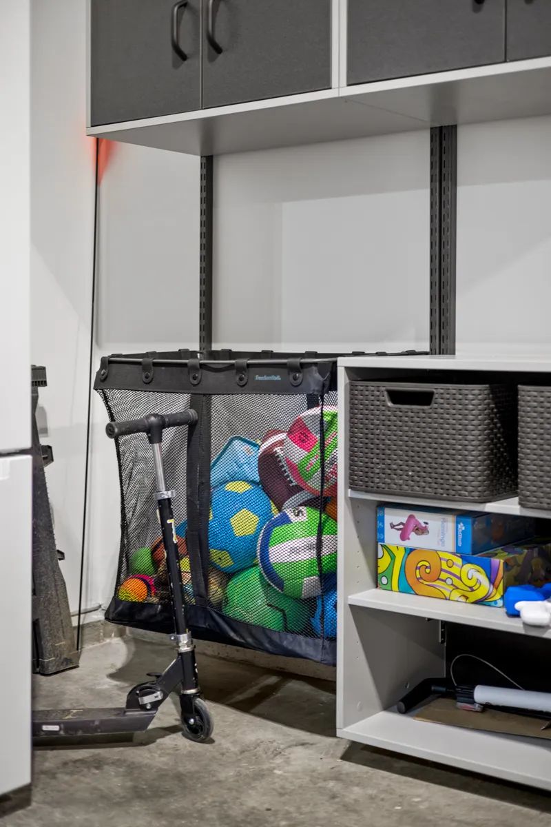 If you aren’t redesigning, the OCD Girls will point clients to basic industrial shelving and black and yellow totes from Costco. These are cost-effective ways to keep things organized and off the floor. They’re flexible enough to grow with your family, too. With small children, the garage might store yard toys, bikes, and scooters. As they grow up, sporting equipment takes over that space, and having versatile storage helps to make that pivot more easily.
