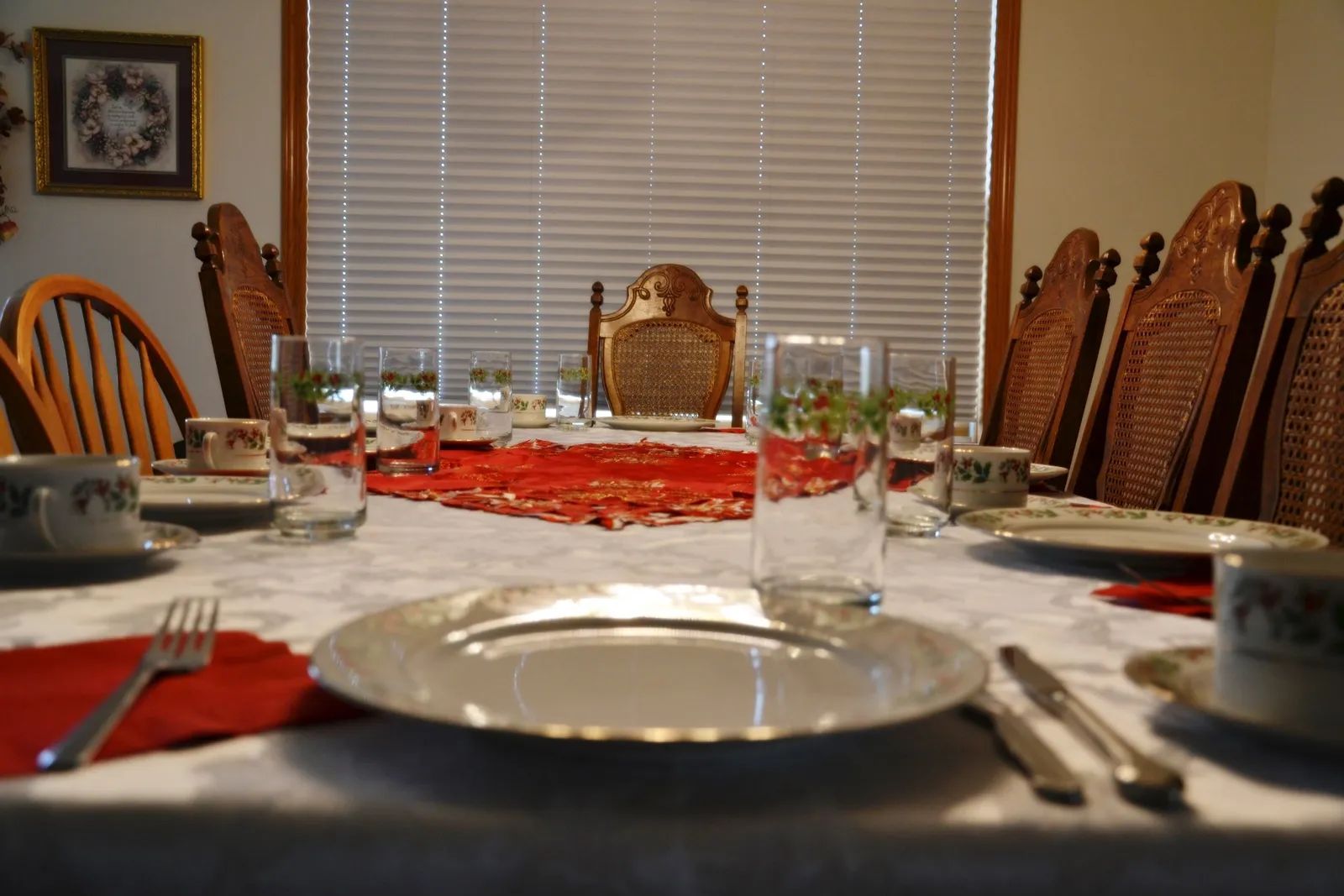 10:15am – Normally my parents set the tables the day before the big meal; however, we decided we’d do it together, this morning. As we deliberate over what goes where – according to proper table setting etiquette – mom pulls out her trusty Better Homes and Gardens Cookbook, which has handy dandy pictorial examples.