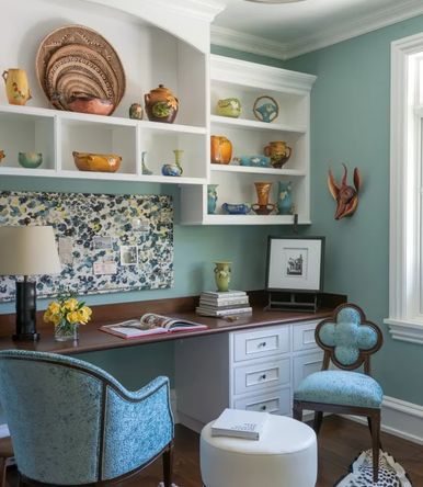 Not all of us may have entire rooms devoted to home offices. When working within a small space that serves as a home office, Jeremiah suggests, “Don’t forget to include at least something in your small space that brings you delight. Pull something from somewhere else and let it join you in your makeshift office.”