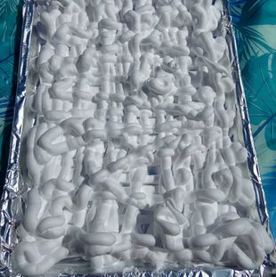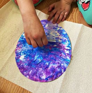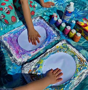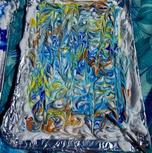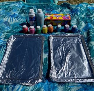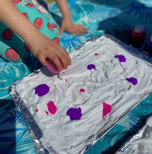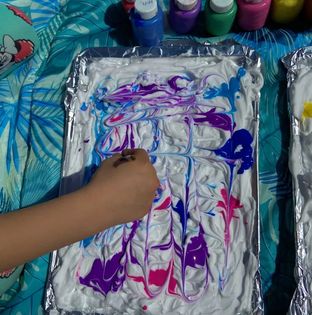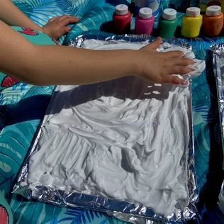 - Cover a cookie sheet in tinfoil (for easy cleanup) and spray with shaving cream. Spread it around.