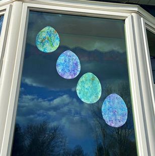 Because of the recent Shelter in Place order, we hung our eggs in our front window, and we invite you to do the same! Anyone walking by can enjoy my kids creativity, or if they are partaking in a Walking Easter Egg Hunt, our house is now included!