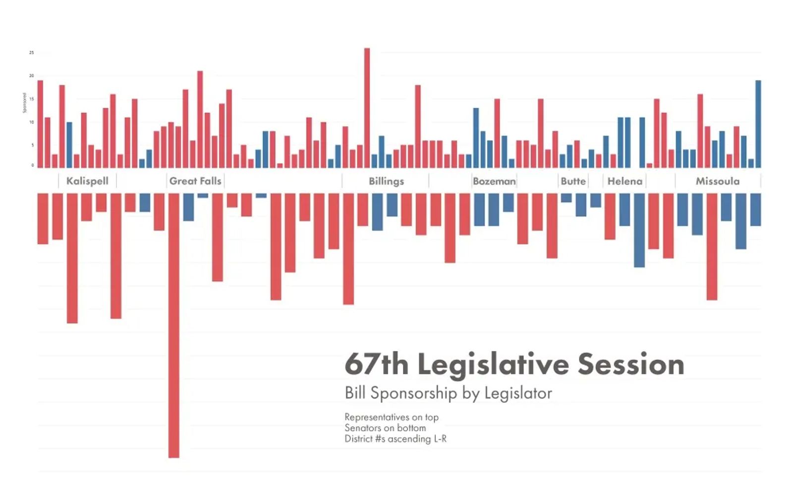 67th Legislative Session | Bill Sponsorship by Legislator (Representatives on top, Senators on bottom, District #s ascending L-R