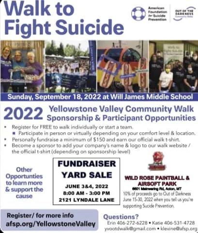 #1 Yellowstone Valley Out of the Darkness Walk Fundraiser | Wild Rose Paintball & Airsoft Park