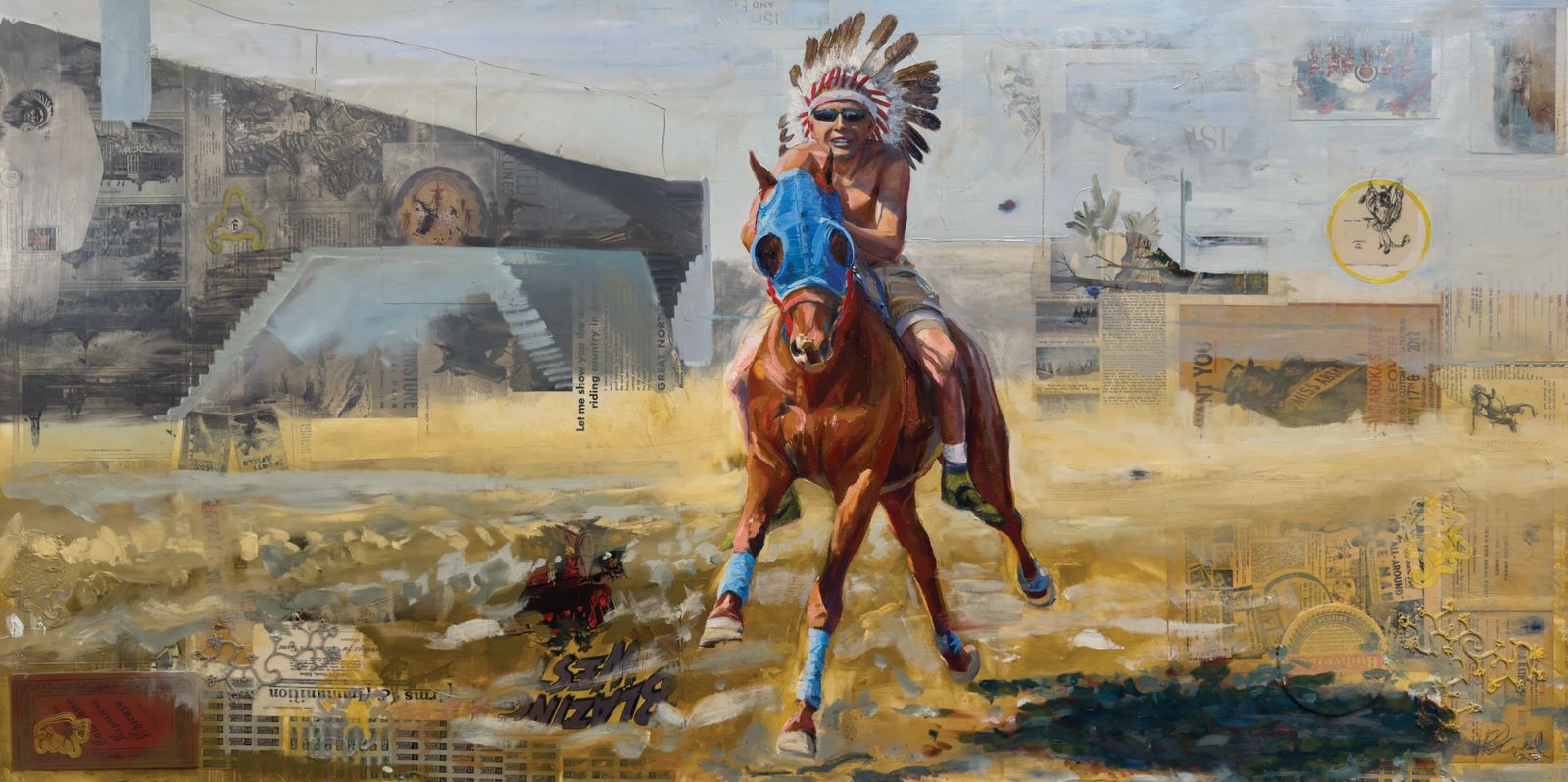 Artwork by Ben Pease Chichiìaìxxaawasuaa- They Ride in a Circle (Indian Relay, Crow Fair) 2025