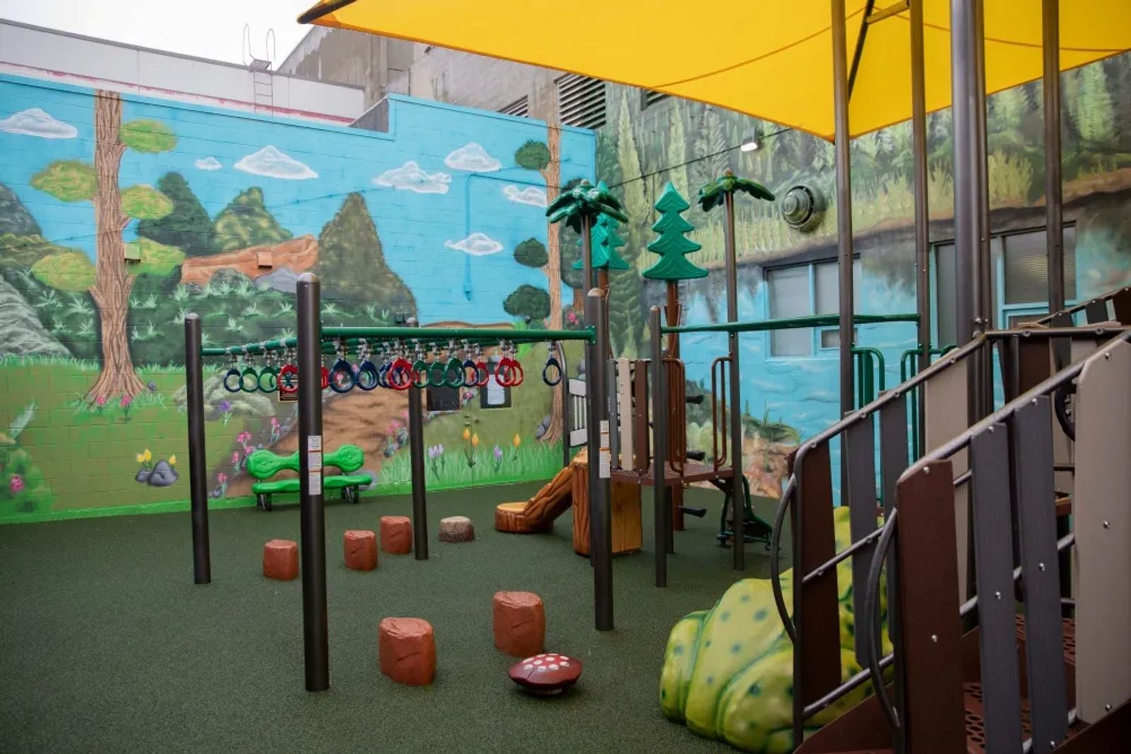 The Y's Youth Center renovation also includes a larger indoor play area for toddlers who are part of the ChildWatch program and too young for the outdoor playground (children must be 3 years old or older to play outside). Toddlers can practice their climbing skills and work on motor development as they explore the indoor play area. They also get to enjoy rubberized surfaces surrounding the play equipment. Additionally, the renovation includes a recent overhaul of the Sky Top youth area restrooms, a new kitchen, an extension to the center's Tech Room, equipment upgrades, a new Wellness Studio, and new sliding glass doors at the main entrance.