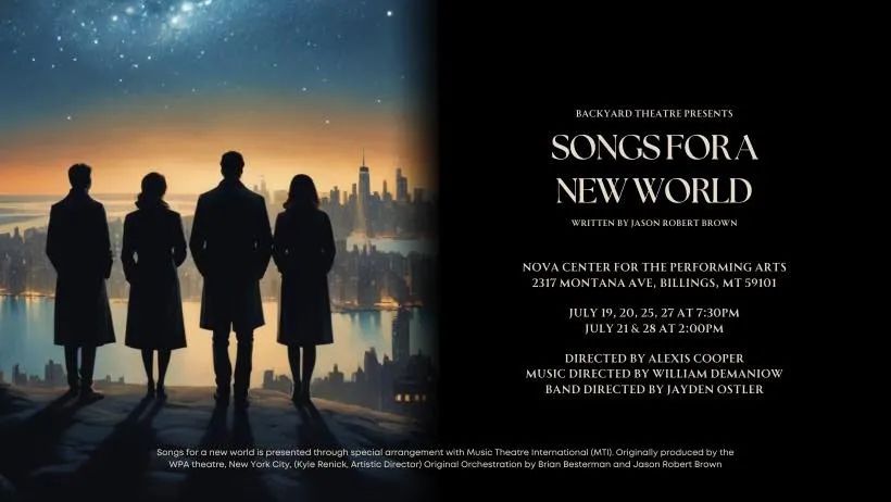 The latest offering from the BT is called "Songs For A New World" by Jason Robert Brown. This roughly 90-minute performance features 19 songs in a series of short stories and vignettes of different people and their journeys through relationships, hardships, and joys. This show is a beloved classic in the musical theater world, and Kuehn is thrilled to be able to bring it to Billings. He says, "This is a show that so many performers around town have wanted to see done for many years, and it is an incredible and powerful collection of music and storytelling." The show features local Billings talent like Amy Schendal (Woman One) and Wendy Carlin (Woman Two), as well as CJ Jennings (Man Two). Kuehn, as well, is making a bold departure from his traditional role as artistic director by tackling the role of Man One in the production.