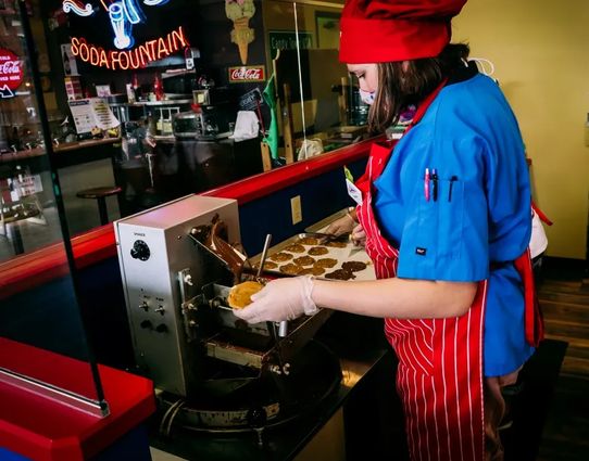 This new layout is also more efficient, as Taylor can work on cotton candy, popcorn, chocolate truffles, and caramel apples simultaneously. Maria says, "Before when everything was back in the kitchen, we could only make one thing at a time." Taylor also notes that sometimes watching her work will inspire a customer to make a special request, changing a few ingredients, or adding special touches to fully customize their order. Maria and Melanie both nod and smile as they say, "We are always up for a challenge, and nothing is too big of an ask!"
