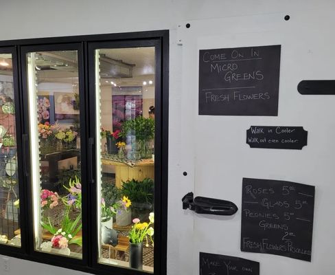 Each space's merchandise and layout was unique - garden tools and pots in one room, outdoor plants and flowers in another area, a collection of vegetables and succulents, a walk-in flower cooler, a gallery space for artist products and a central coffee shop. Clean white walls, black accents, chalkboards featuring quotes and phrases, and modern lights and farmhouse fixtures make the space feel cohesive throughout, drawing your gaze to every inch of beauty around you.