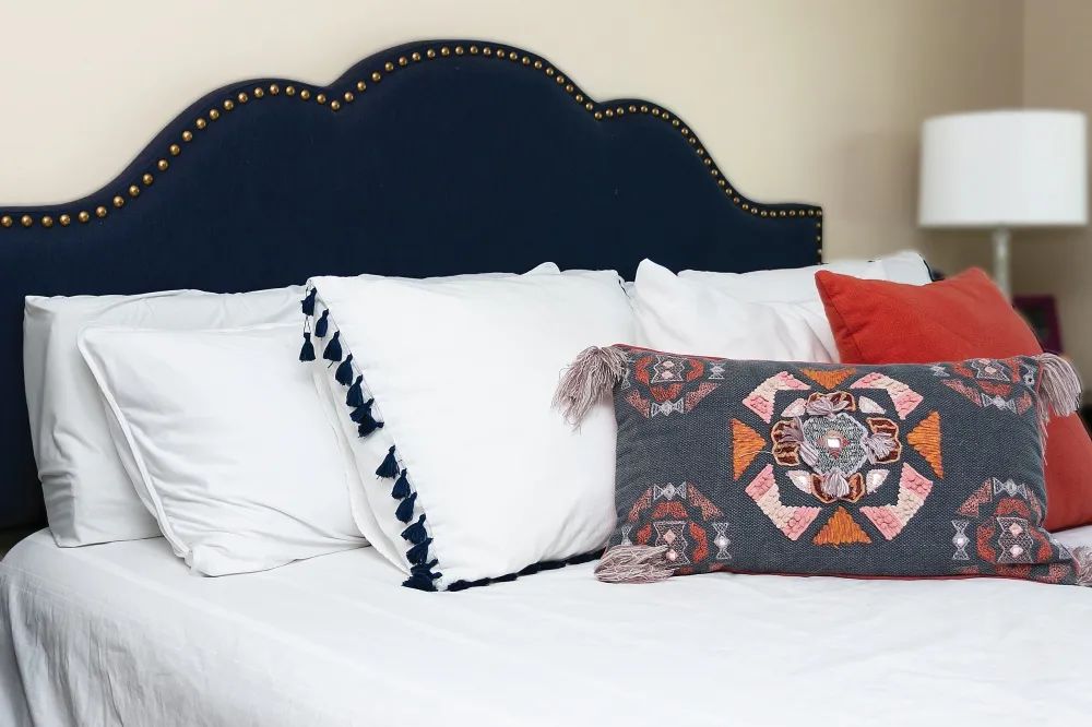 As for the little decorative pillows that serve no function other than making a bed look pretty, less is definitely more. One or two accent pillows are enough to bring some color. More than that will become a dusty nuisance that needs to be removed and replaced every night and every morning.