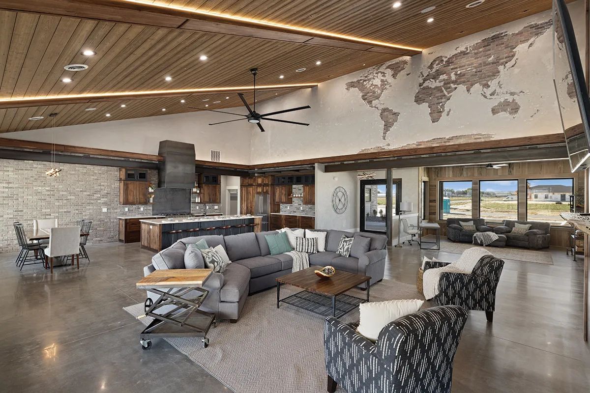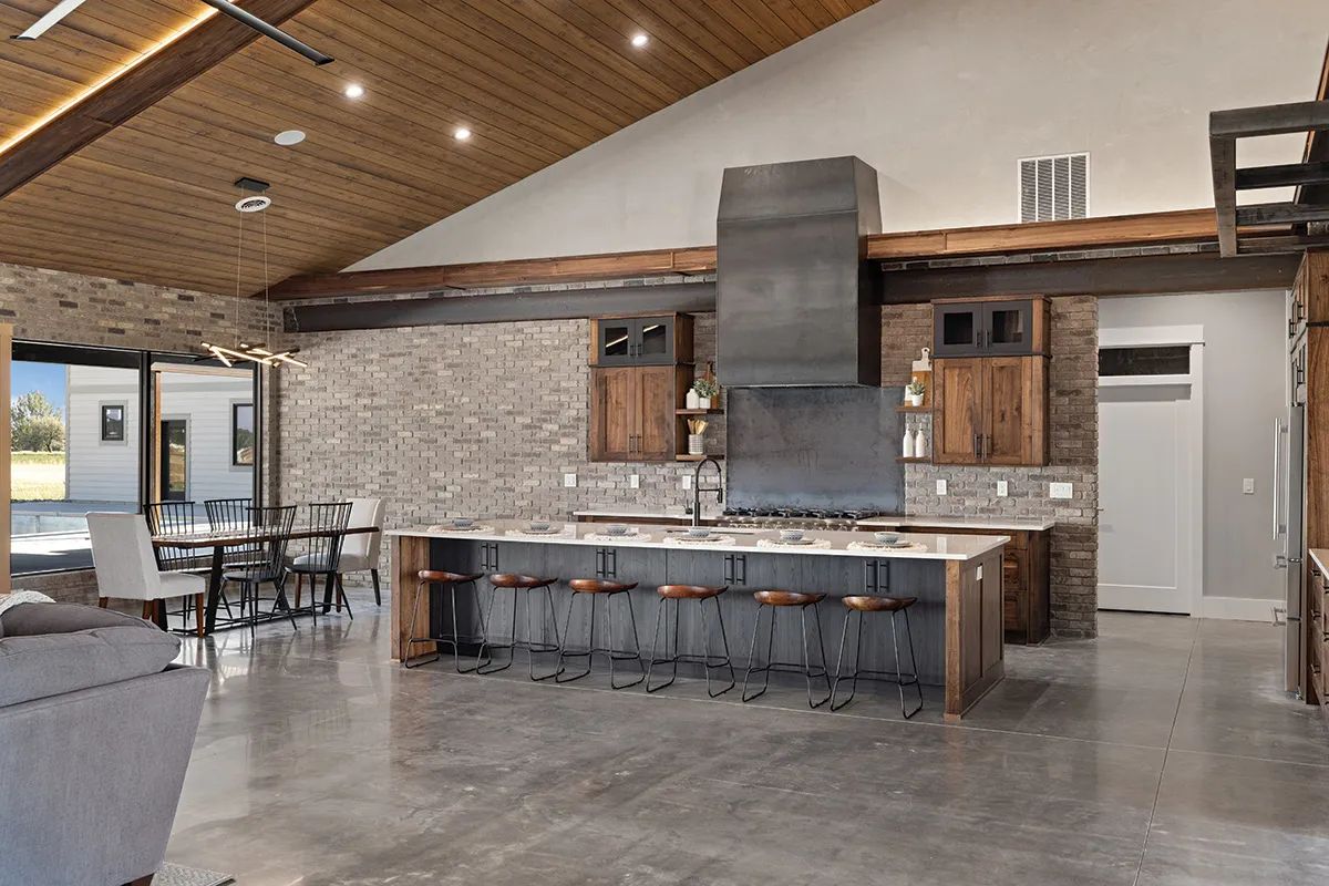 Much like Montana, this home welcomes its wide and open spaces. One of the defining characteristics of industrial interiors is the emphasis on openness. With fewer walls dividing the common living areas, the space is unrestricted, allowing for effortless flow and ample light.