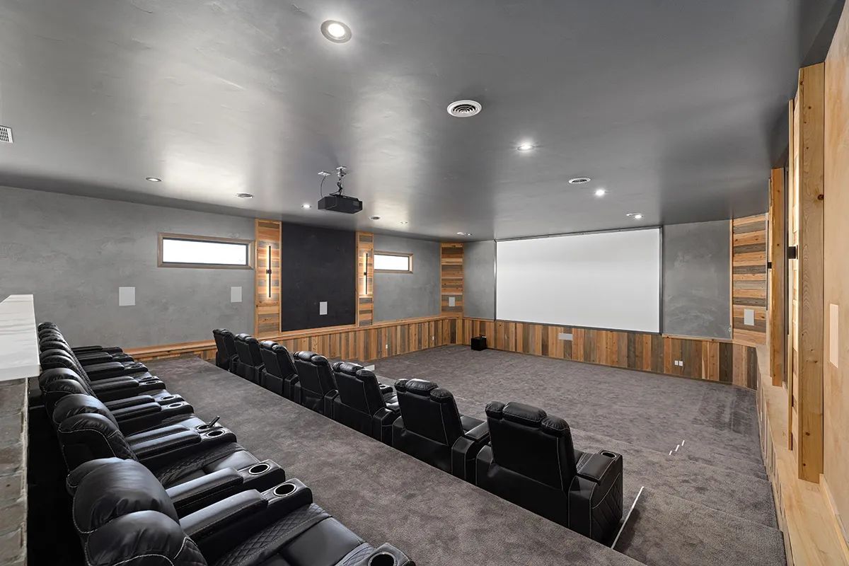 Why go out for a mediocre theater experience when you can bring Hollywood home? Whether it’s the latest blockbuster or the big game, the Olson family gatherings often revolve around their 2,000-square foot theater room. In front of the massive 240-inch screen lies rows of comfy stadium seating and room for 30 guests. The stunning accent wall is made of a sinker cypress log shipped from California, and the room is cozy and classy. As if that’s not enough, an eight-foot awning window swings open during the warmer months, bringing the inside out and outside in.
