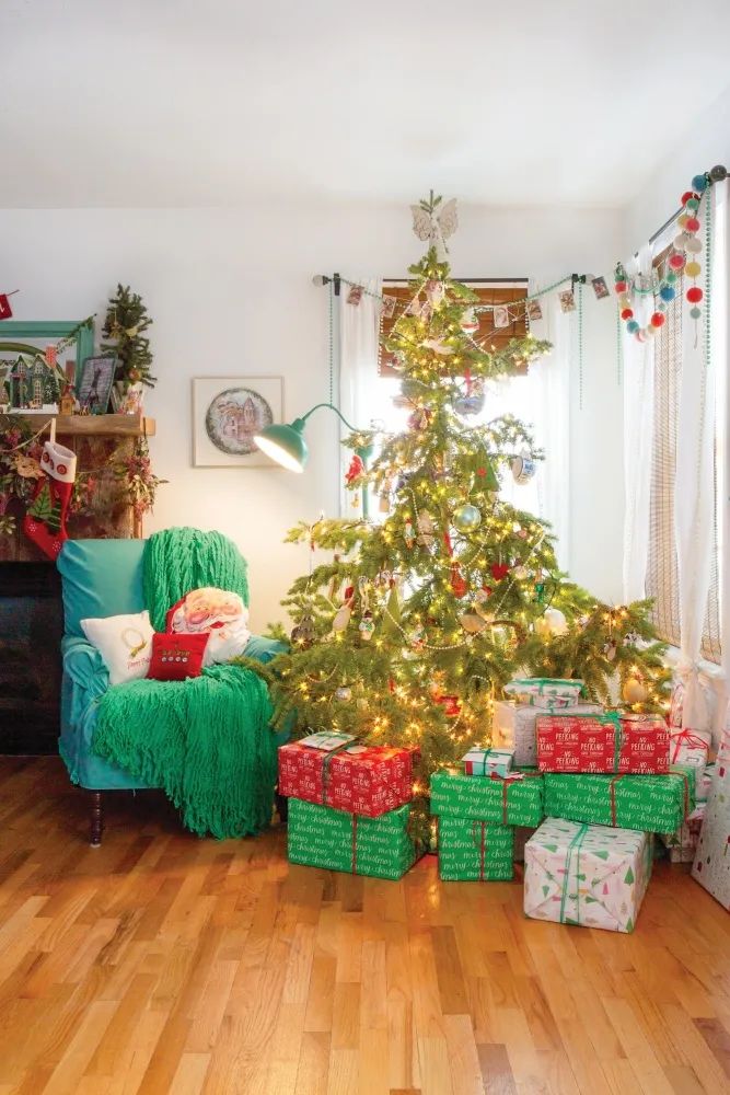 She reminisced about her beloved mother and how they used to tease her about her Christmas tree choices. "Every Christmas tree is beautiful," her mother would tell them. And over the years, her Christmas tree style has evolved from a pre-lit pine tree to a fresh, Charlie Brown style layered in lights and ornaments.
