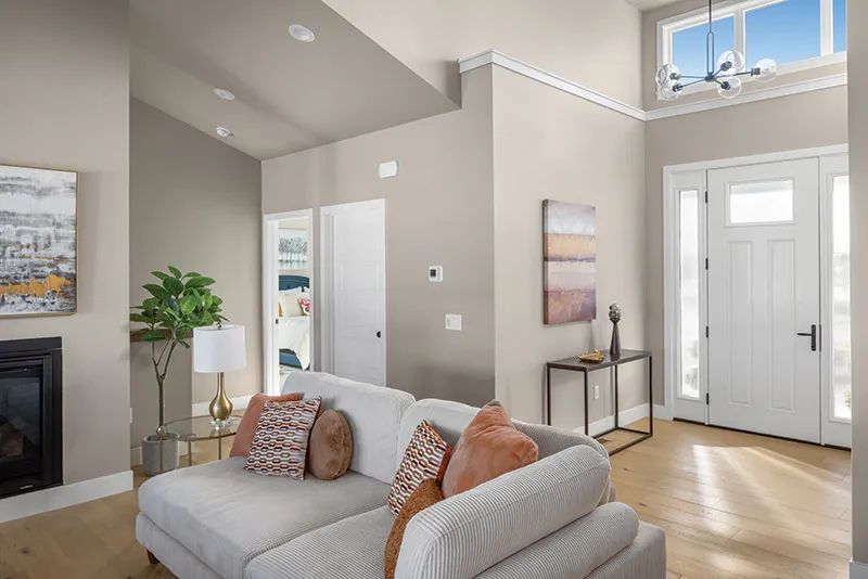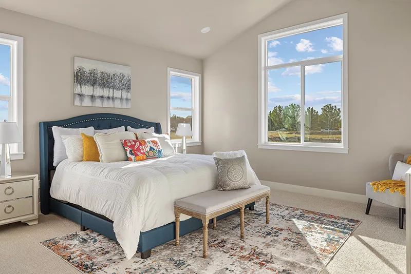 A home is more than just four walls, and while ceilings are often ordinary and forgettable, Classic Design Homes made them an architecturally interesting element of this home. With multiple pitches and angles, the vaulted ceiling in the Great Room adds more character, openness, and elegance to the already-grand space. The primary suite also has a vaulted ceiling, and the basement has heightened walls. Thus, the home provides plenty of eye-catching reasons to look up.