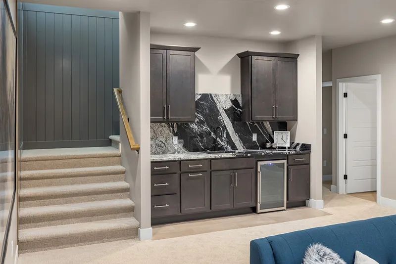 Classic Design Home excelled at transforming the all-too-familiar dark and gloomy basement into a bold, bright, and personalized space for friends and family to gather. Complete with three bedrooms and two bathrooms, the lower level is incredibly convenient for large families or long-term guests. The basement’s unique finishes, taller-than-standard ceilings, and numerous windows defy the norm. And what TV and game room can’t use a wet bar, prep sink, and beverage cooler?