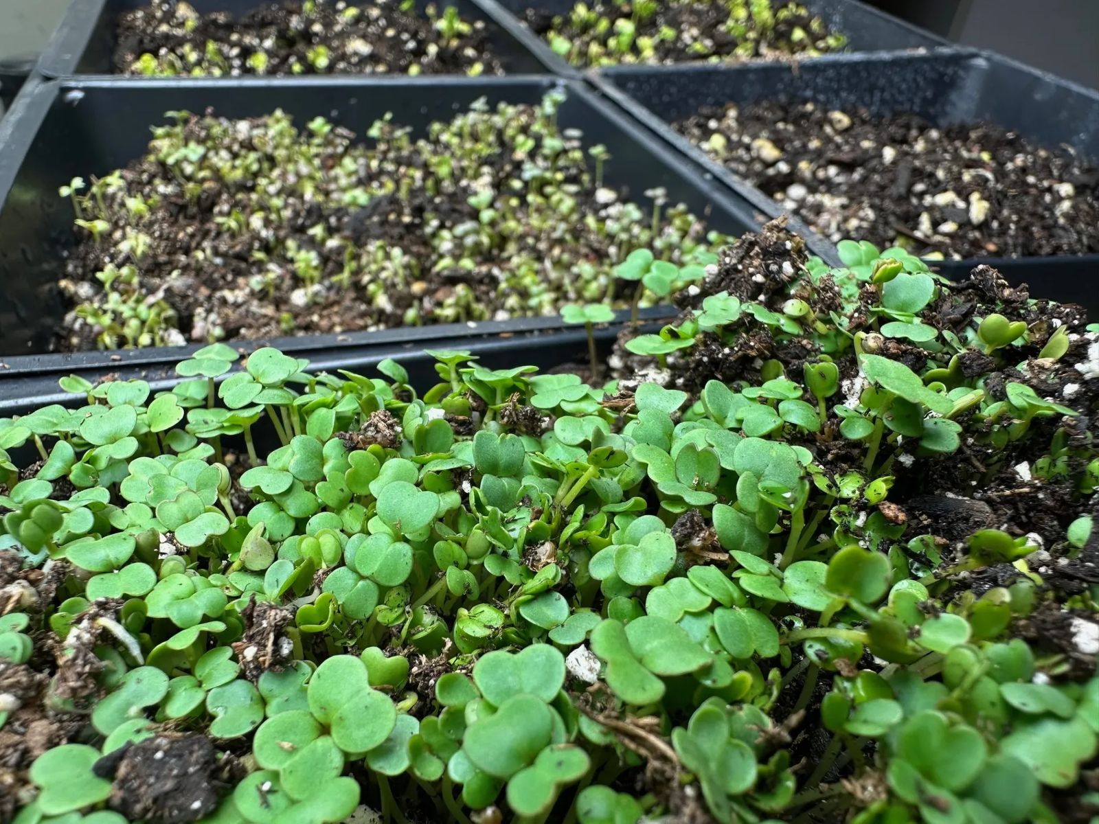 Microgreens grow in about 10-20 days, offering a quick turnaround and a versatile edible product that can be used to top soups, salads, sandwiches, tacos, and more! Because they are harvested so soon after sprouting, the greens are nutrient-dense, giving a concentrated dose of vitamins and nutrients.