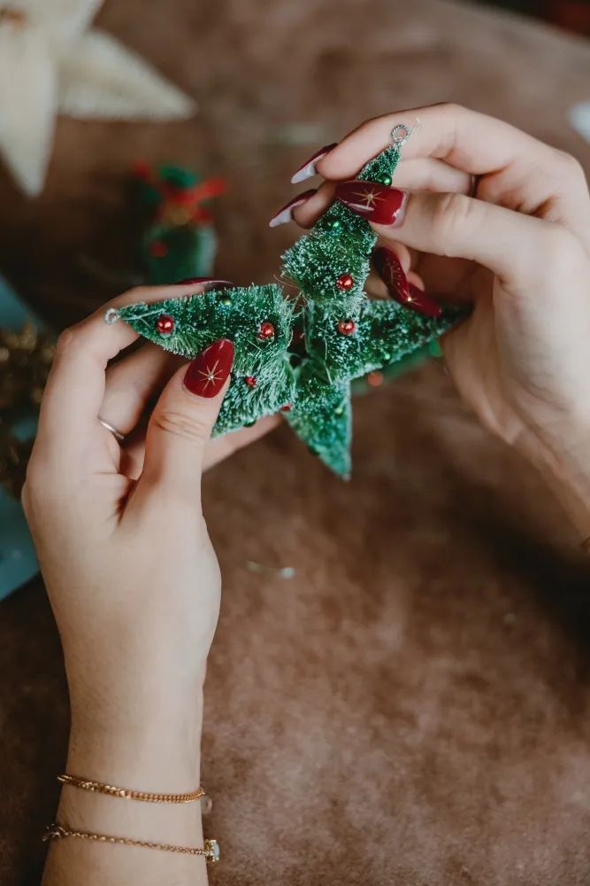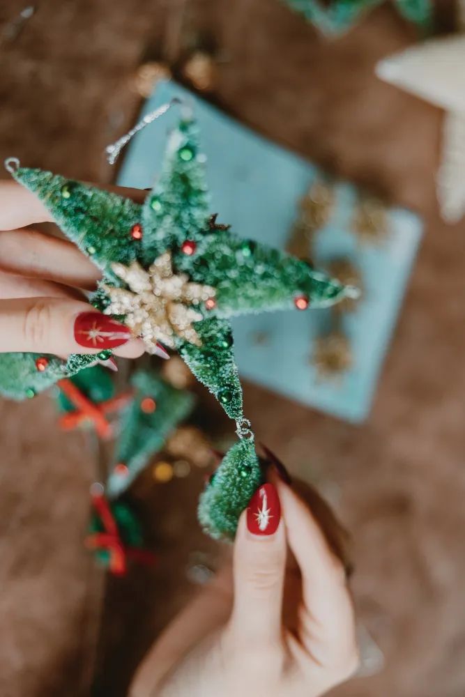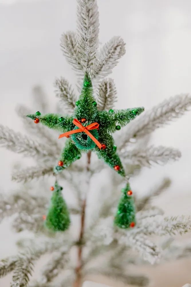 4. Attach two trees by the wire loops to the bottom of the star as a tail.