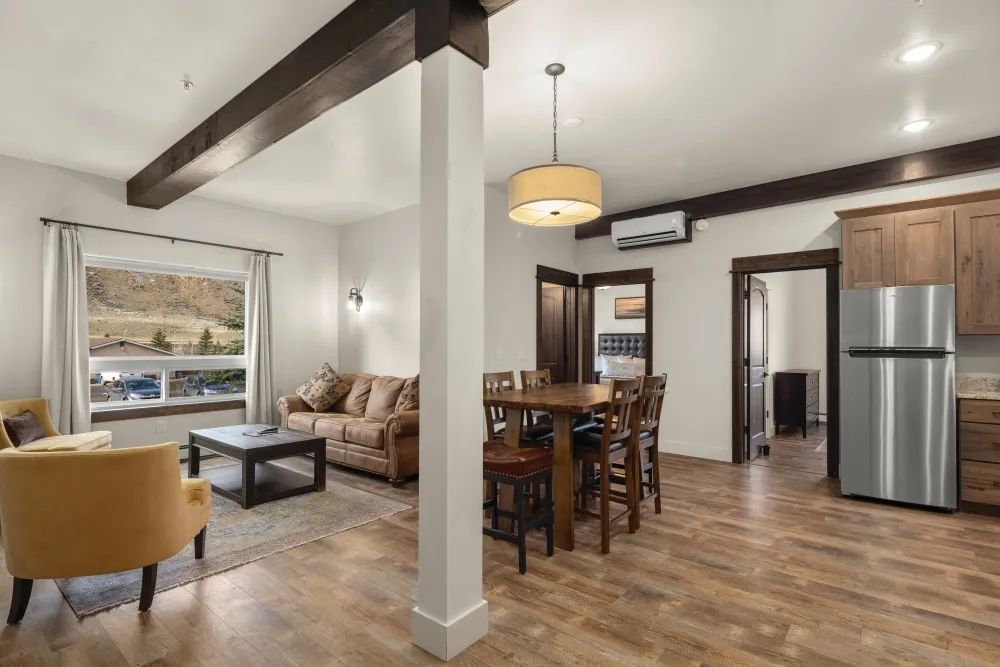 Introducing the resort’s latest and greatest addition to its overnight accommodations, The Suites at Yellowstone Hot Springs invite you to experience the beautiful blend of local charm and luxury. These apartment-style suites provide everything needed to have the perfect stay, with separate living and sleeping areas, a fully equipped kitchen, private bathroom with a shower, smart TVs in each bedroom, high-speed wi-fi, fireplace, air-conditioning to control your comfort level, and stylish décor with premium furnishings, giving each suite its own character and personality. With one one-bedroom and four two-bedroom suites, there is plenty of space to comfortably host a small family, a group of friends, or a couple seeking the ideal romantic getaway. The suites sleep 4-6 people and are also pet and smoke-free. Be mindful of a minimum night stay requirement when booking your cabin or suite online.