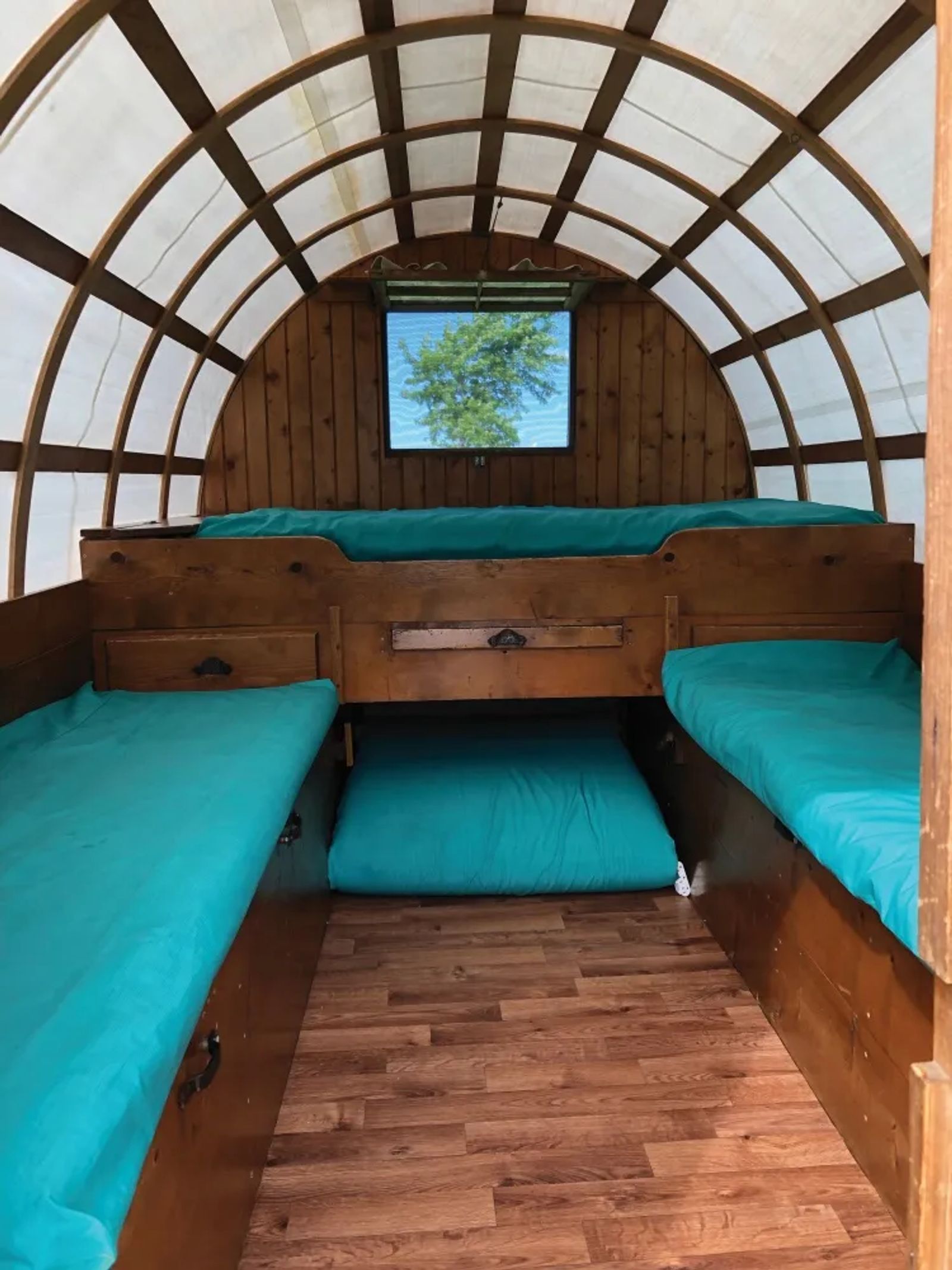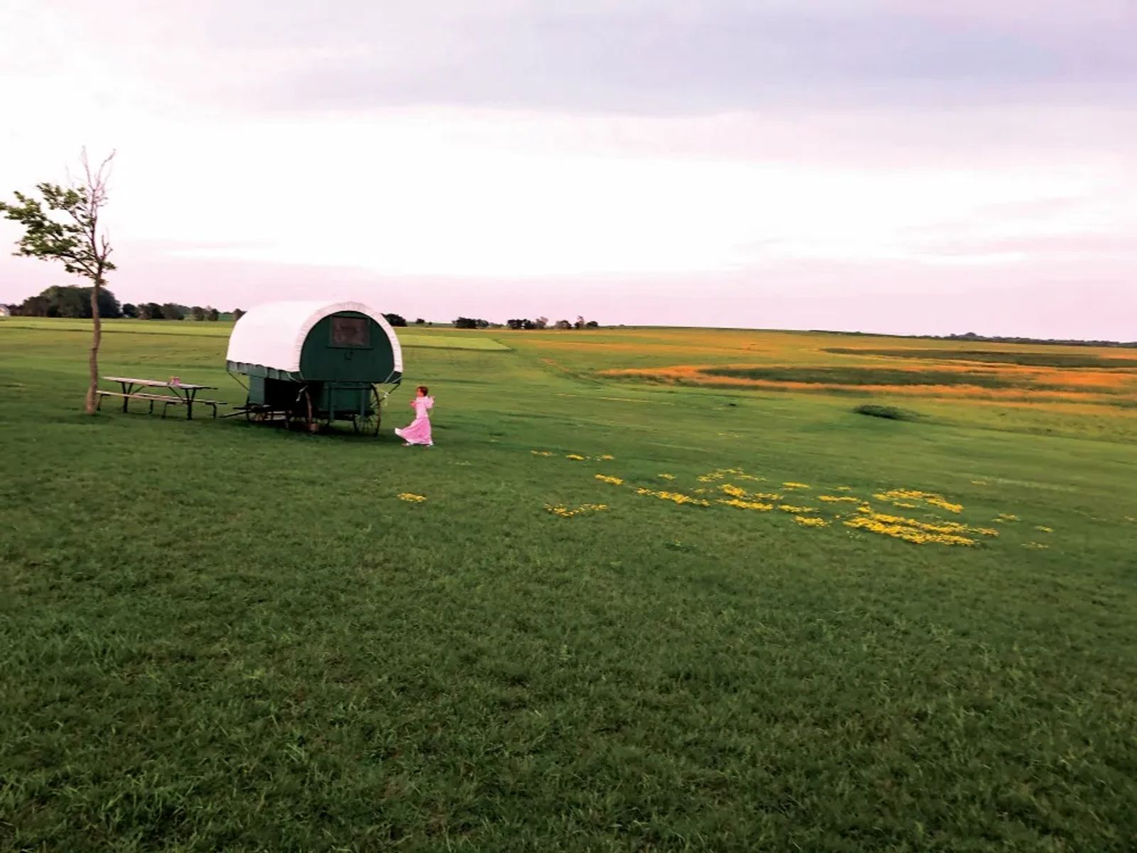 Dotted with sheep-herder covered wagons where guests can camp, the homestead is a wide-open playground for young guests. The five cottonwood trees Charles planted for each of his daughters and wife, Caroline, mark the site of the original house. A replica of the Ingalls’ shanty is nearby, where you can feel how hard and uncomfortable a straw-tick mattress is, make pioneer toys, and braid a rag rug. Another building houses farm equipment, where visitors twist rope and make their own corn cob doll. There are horses and covered wagon rides and a seemingly endless supply of frogs and friendly barn kittens. The wind is relentless, but the air is fresh and smells of grass and sunshine, just as Laura had described it.
