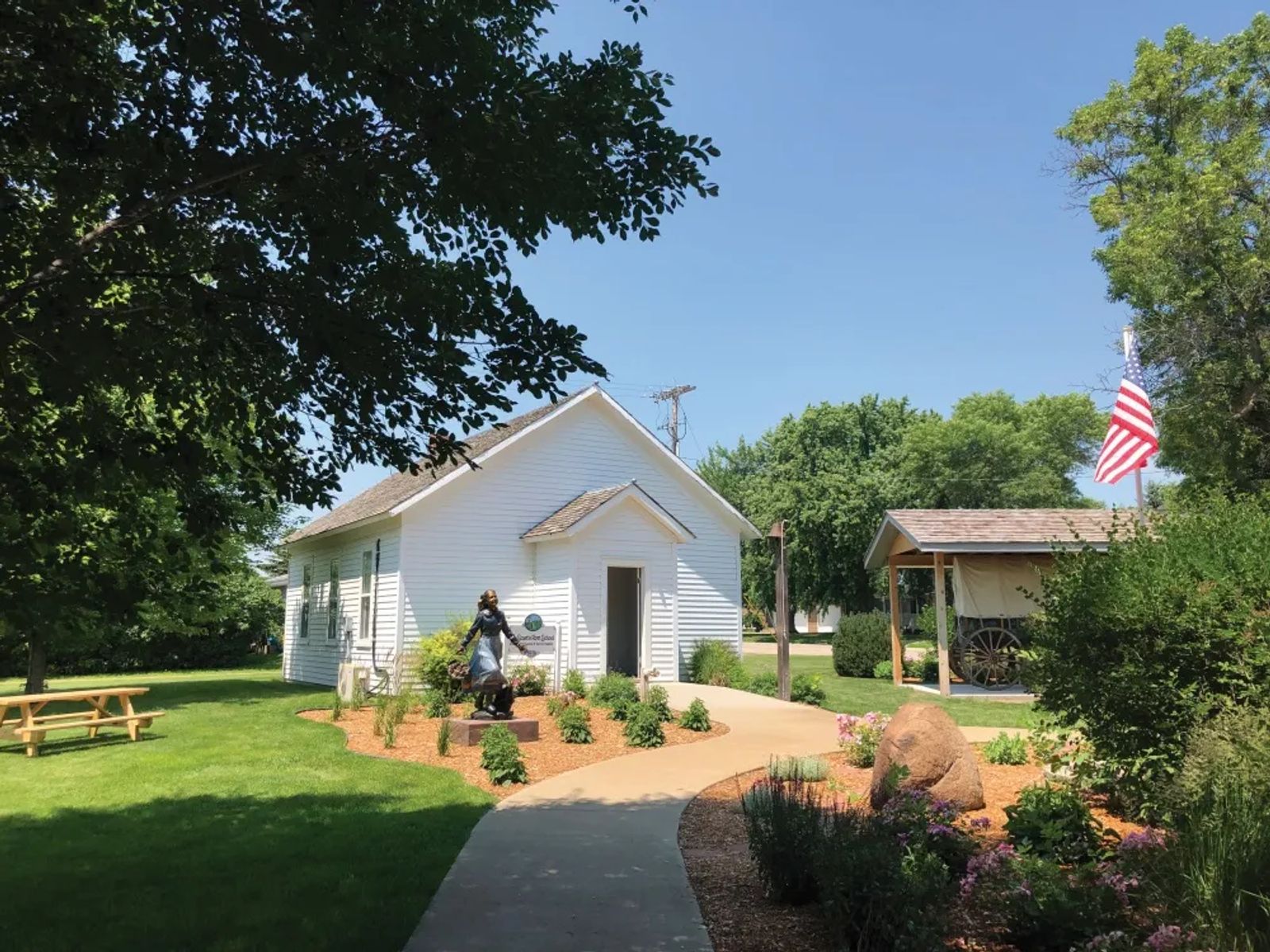 Across the street is the Loftus Store, complete with a checkerboard outside, and yes, they sell suspenders. Several buildings central to the stories, including the tiny Surveyors House, which Laura breathlessly declared as the biggest house the Ingalls had ever inhabited, and De Smet’s first school, where Laura defiantly rocked the schoolhouse seat until she and Carrie were unjustly sent home, have been moved to a single location on the east side of town. They are managed, along with the Ingalls’ final home nearby, by the Laura Ingalls Wilder Memorial Society, so it’s easy to tour them quickly. Also on site is a replica of the Brewster School, where Laura took her first teaching job.