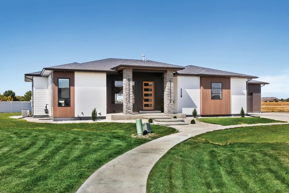 From the eclectic choice of exterior siding to the modern glass-paneled front door, the home’s exterior promises to impress even before stepping inside. The wide stairs and ledge stone pillars make a grand first impression. The exterior LED lighting illuminates the entire front porch as the sun goes down. “We put a lot of thought into the exterior, and this creates a neat look so your house doesn’t just disappear at night,” Tiel said.
