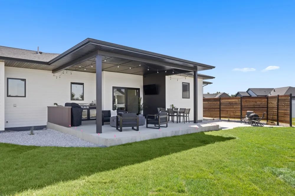 Step outside onto the back porch, and the luxuries of the home continue. Whether it’s a space for cooking, entertaining, dining, relaxing in the hot tub, or cozying up by the fire, this home has it all. The covered patio has an outdoor kitchen with significant counter space, a natural gas fire pit, mounted TV, and room for casual seating and a dining table.