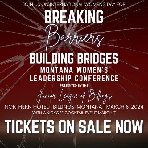 On March 8, 2024, the Junior League of Billings proudly presents the 8th Annual Montana Women's Leadership Conference, an empowering event designed to inspire and empower women across the state. Taking place on International Women's Day, this year's conference, themed "Breaking Barriers, Building Bridges," aims to foster mindful leadership in the realms of personal, professional, and community development. You won’t want to miss this event, filled with dynamic discussions, insightful presentations, and transformative workshops led by trailblazing women who are making significant strides throughout Montana.