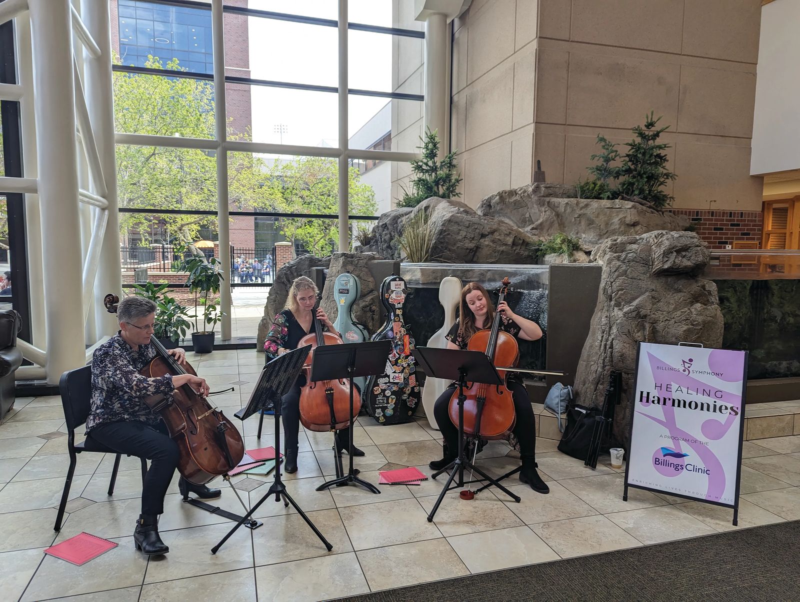 Within the Healing Harmonies program, which was stalled during COVID, musicians visit local hospitals to provide the healing power of music to patients, staff, and visitors. Fortunately, the program has been resurrected and has provided eighty different engagements with Billings Clinic during the 2023/24 season. "Our orchestra musicians will provide short recitals or solo cellists will go to the infusion center while cancer patients receive treatment," describes Brad. "We have 10-15 musicians who work with Healing Harmonies regularly."