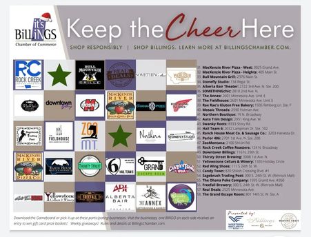 The Billings Chamber of Commerce rolled out this 5-week campaign ahead of the most infamous of shopping weekends, running November 16-December 21 with a focus on shopping responsibly and shopping in Billings. Here’s how to play: