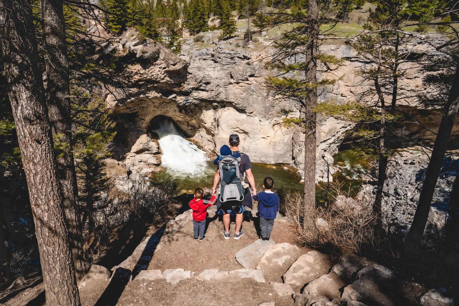 Continuing to Big Timber, go to the Natural Bridge Falls picnic area. Spend the day hiking and basking in the beauty of the waterfall, dropping over a limestone cliff. There are paved trails with guard rails and some dirt paths for those seeking a little more adventure. You can hike down into the canyon to get an up-close and personal view of the falls. Be careful, though, and never underestimate its immense power!