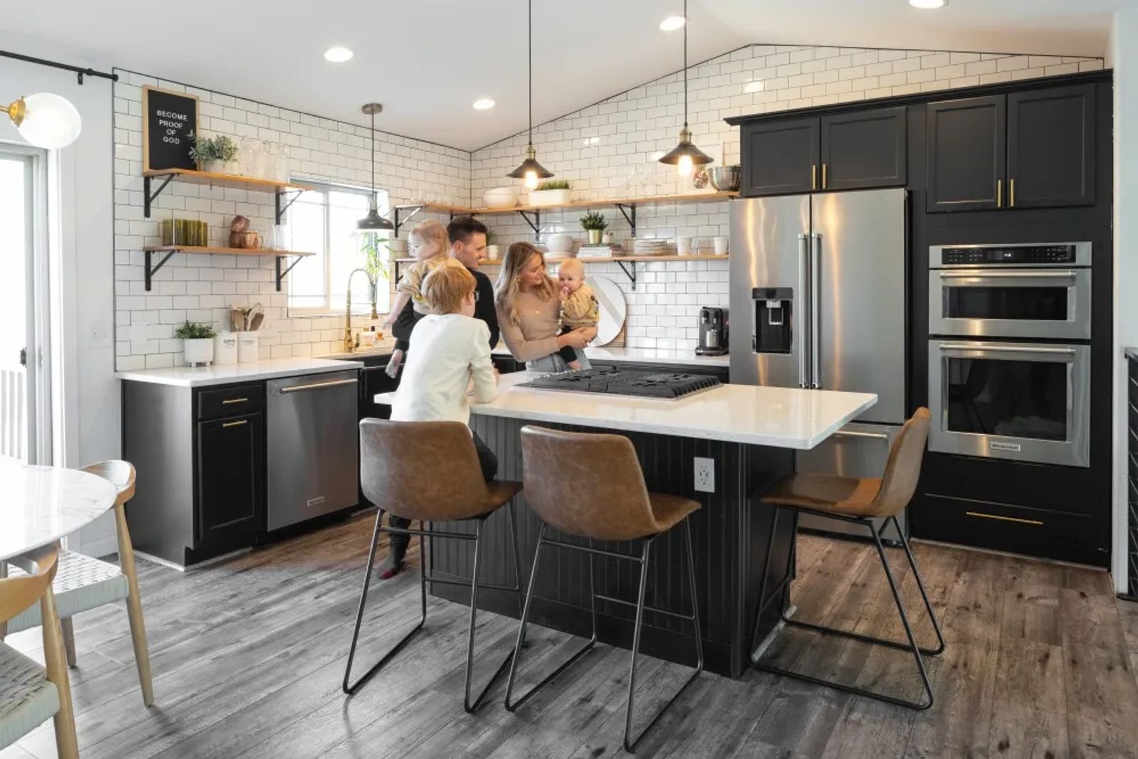 The busy family of five- Brian, Rae, Noah (11), Callan (22 months), and Lennon (10 months) needed a space that felt “warm and welcoming to others.” Rae has always had a passion for homes and design and was entirely in her element designing a space their family loves and one in which to bring the couple’s two young daughters home from the hospital.