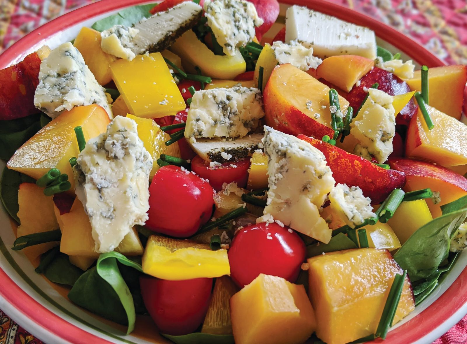 Peach And Stilton Spinach Salad with Honey Lemon Vinaigrette