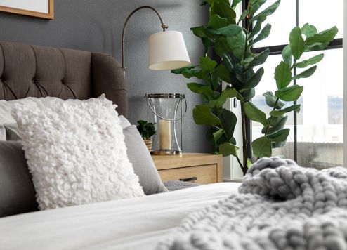 Don’t rush out and buy all the small houseplants you can find. Be sure to vary the size of your plants. A medium to large tree in the corner will go a long way in bringing life into the room while keeping the space from feeling cluttered with too many small pieces.