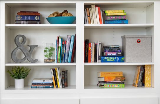 Styling bookcases can be particularly challenging. We want to fill them with the books we love, but even bookshelves filled with the most exciting books will feel lifeless without adding various textures to break them up. Try using plants as bookends to brighten things up.