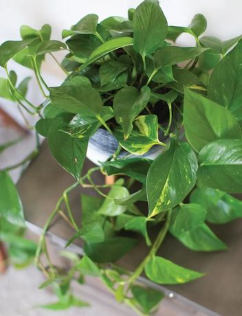 - Golden Pothos (or Devil's Vine or Devil's Ivy)): a trailing plant with heart-shaped leaves