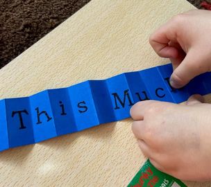 - Using the stickers, spell out “this much!” (put one letter on each space)
