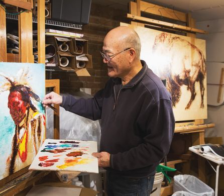 Koyama's art might be local to Montana, but its impact has stretched across the globe. One of his paintings, a bison of glowing red and gold, hangs in the US Ambassador’s residence in Beijing. A demand for his work has allowed Koyoma to paint full time and exchange his well-worn ranch gloves for a paintbrush. Two young grandchildren have added fresh inspiration to his life, and he says, "I'm just enjoying what I'm doing now!" Indeed, Koyama dreams of a world where we can all dabble in the things that bring us joy and fulfillment. "The arts in general – we couldn't live without them. The world is a much better place, and we need it all. We need that human intuition that a computer can’t provide. Until the day when he has been painting longer than he has been farming, Koyoma will continue to fill the galleries, window scapes, and homes of Billings and beyond with art that truly reflects the vibrancy of our Montana landscape.