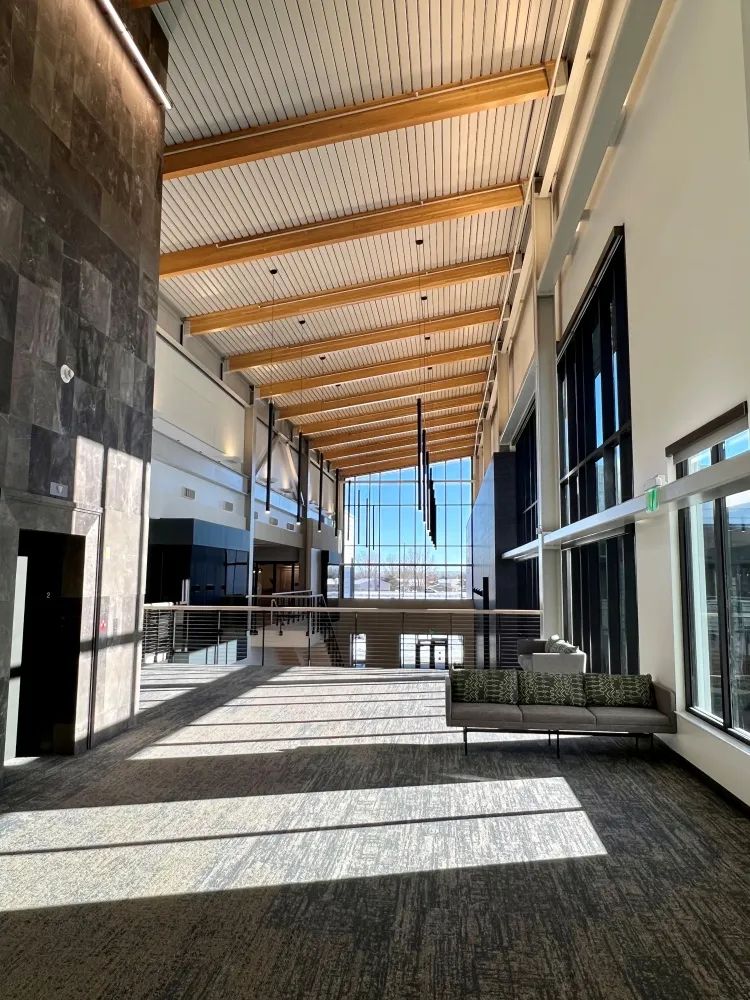 Dr. Park noted that when people walk through the door, his hope is that people get a wow factor, which you definitely do. “Internally,” he shared, “when we were planning, it was called the Big Sky Project, so we wanted Big Sky and windows and wood trim, that Montana feel.” Approaching the building, you can’t help but be struck by the stunning exterior, but then you walk in to soaring ceilings with exposed wood beams, perfectly complemented with darker elements and cable and iron railings, and incredible washes of natural light. Wow, indeed. Throughout the campus, you will discover other beautiful touches of Montana elegance.
