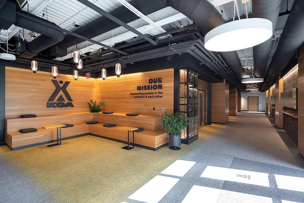 In addition to prioritizing environmentally-friendly design, it was incredibly important to KOA CEO Toby O'Rourke that the company’s mission, “Connecting people to the outdoors and others,” was not only visible throughout the building but also felt by the people within it.