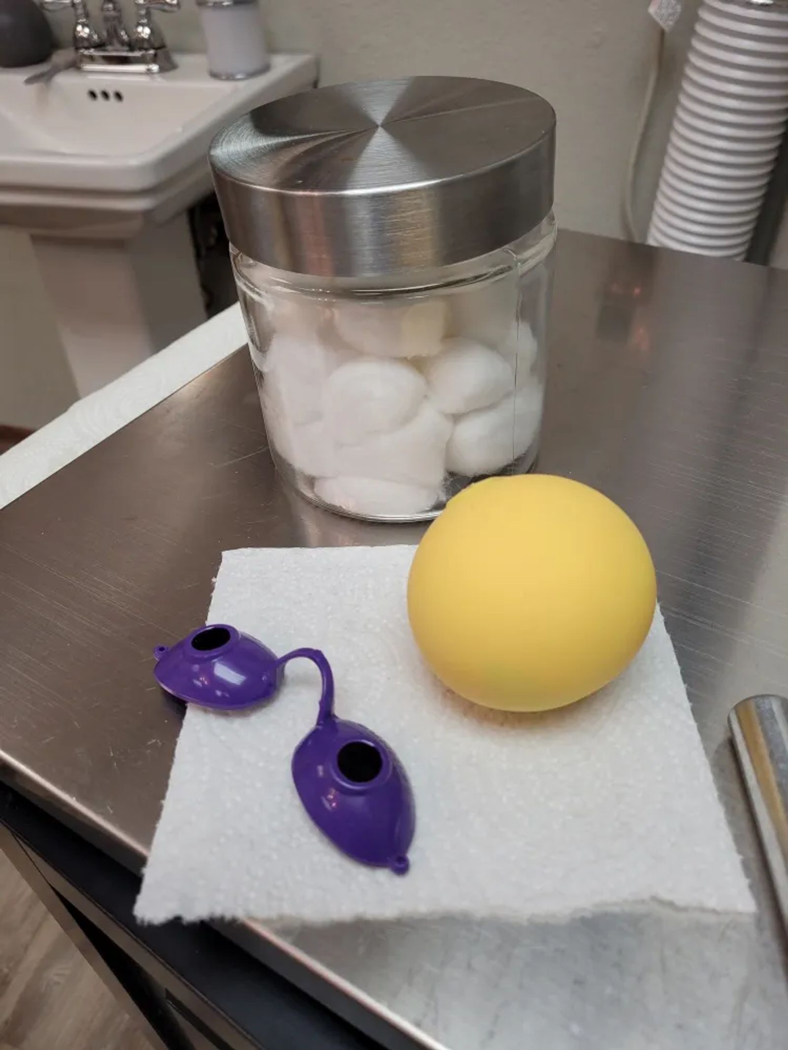 I’ve never felt the need for a stress ball, but I do find the goggles helpful since she’s working on my face and the light can get bright.
