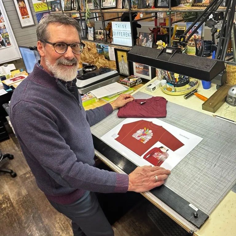 This year’s commemorative race shirt was designed by Jim Heins of Heins Creative. Since 2000, Jim has contributed his creative talents and has designed an impressive 20 shirts for the event. Past designers have included local female artists, and the leadership team hopes to continue incorporating more women designers in the future.