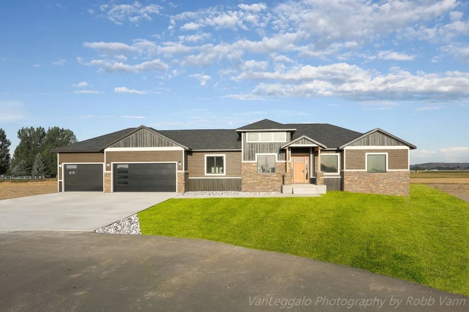 The exterior of this home is a wonderful combination of color and textures that make excellent curb appeal. There is clapboard siding, board and batten siding, and stone surface that are accented with metal panels that mirror the texture of the board and batten. It is a well-orchestrated exterior that is a delight to the eyes.