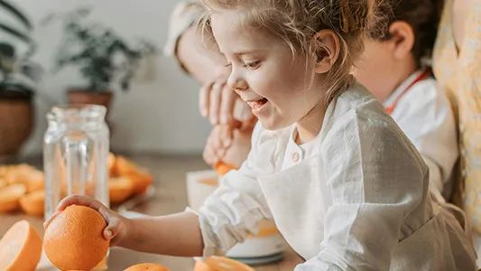 • Involve your child with meal planning and preparation at the level they can join. When kids are involved in meal preparation, they are more likely to try what was made.