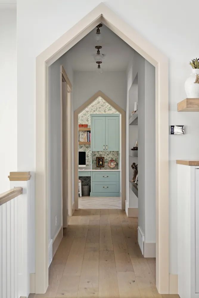 Light floods the kitchen from its void of upper cabinets. “We opted to do windows instead, which means you have to find other ways to store your dishes,” Anne explained. The lower, pull-out cabinet drawers are painted a soft, hue that Anne adores, creating a relaxing energy that carries into the rest of the home.