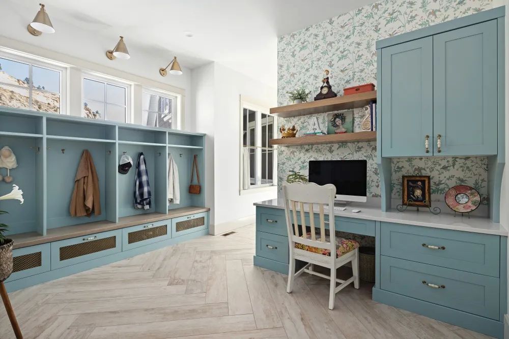 The massive mud room equipped with spacious cubbies for every family member should be standard in any home.