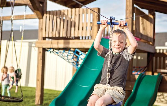 In honor of her dad, Jenna says, “We waited for my dad to come to visit before we put up the zip line.” Although he wasn’t sure the zip line was high or fast enough, “We reminded him of the ages of our kids.”