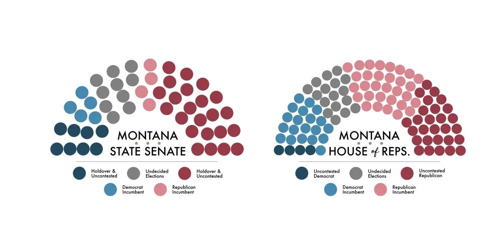 In the 2020 General Election, 92% of Montana’s legislative incumbents won their reelection bids.² If we make the imperfect assumption that all incumbents win, that will give Republicans four more seats in the Senate, bringing their total to 27, a majority of the 50 Senate seats. Even if Democrats win the remaining seats, it won’t be enough for majority control of the Senate.
